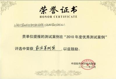此次年会共评选出2010年度最具代表性的优秀测试案例十个,由重点实验室提交的“信息安全管理信息系统”获评“最佳案例奖”。