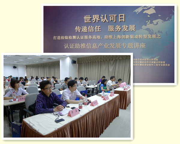 2012年6月7日,由北京赛西认证有限责任公司上海分公司、上海市总工程师协会、重点实验室共同举办的“认证助推信息产业发展专题讲座”在上海“世界认可日”活动期间隆重举行。来自政府部门、研究机构、咨询机构、产业界的近百位代表参加了此次讲座,上海市质量技术监督局田义龙副处长为活动致辞,重点实验室蔡立志主任也出席了此次活动。